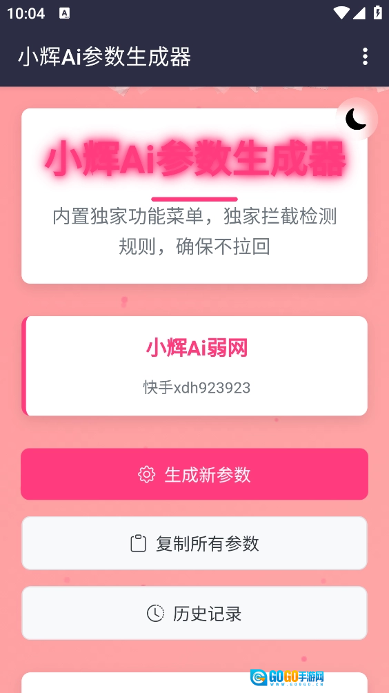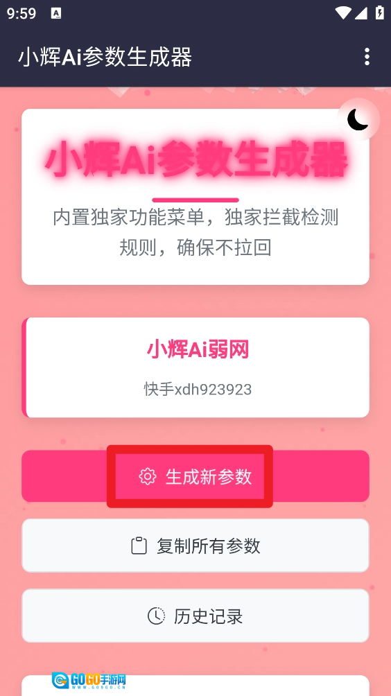 1、在本站开启小辉Ai参数功能,然后在首页点击“生成新的参数”按钮。