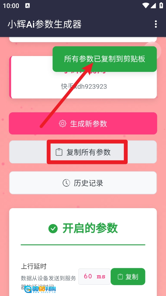 2、如图所示,完成生成后即一键复制所有的参数。