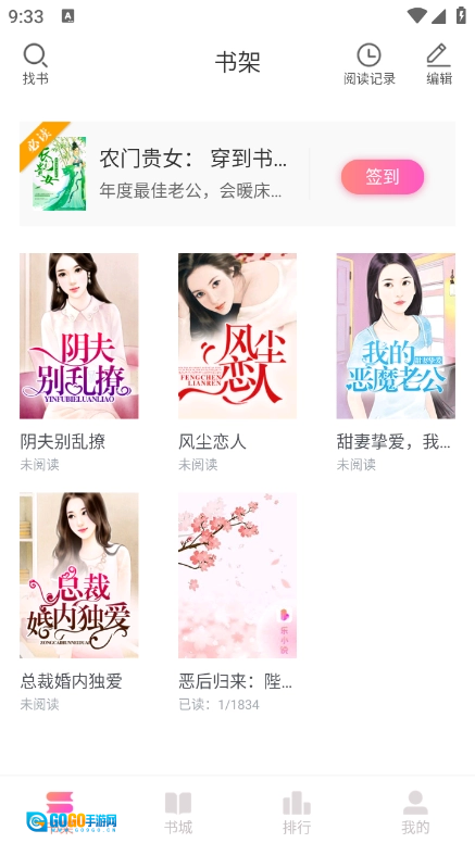 2、进入书架页面,涵盖各种题材的小说资源。