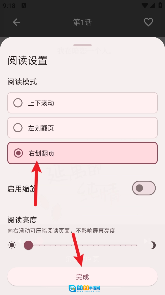5、如图所示,在当前页面挑选心仪的阅读模式,点击底部的“完成”按钮就可以了。