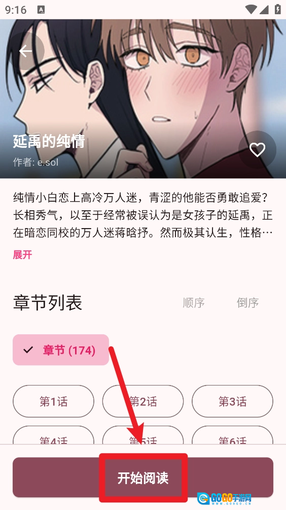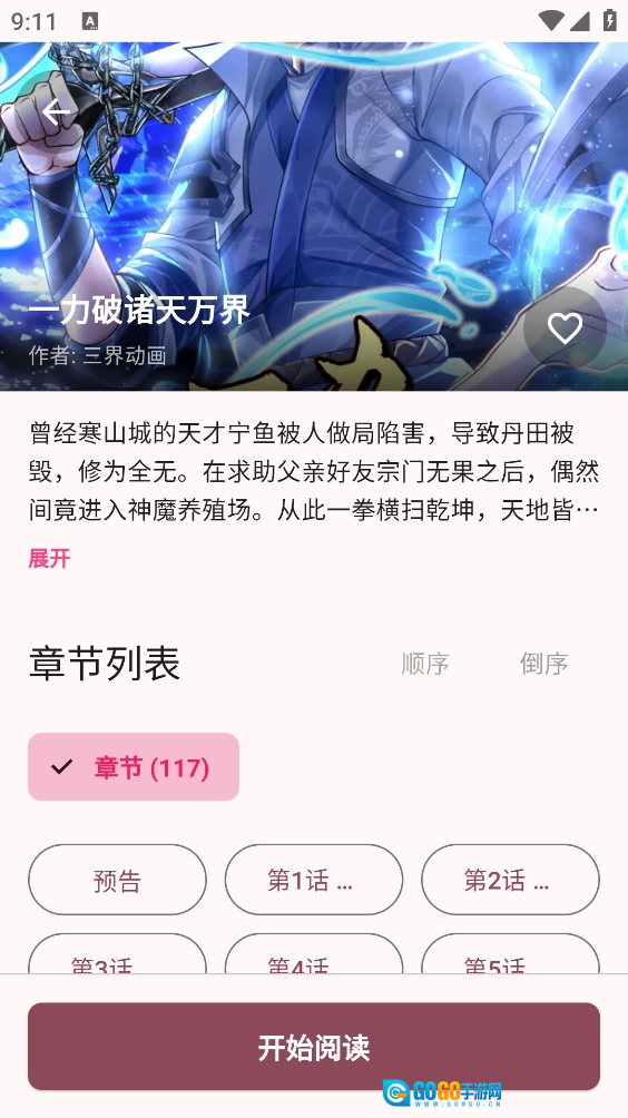 3、在漫画阅读详情页点击"开始阅读"按钮。