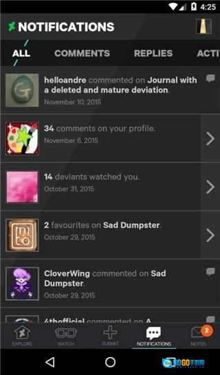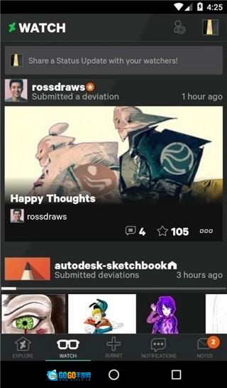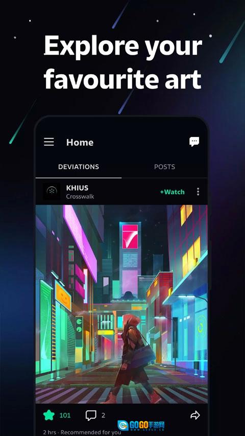 点击底部导航栏的【Watch】(关注)选项,就能查看你关注的艺术家发布的作品,第一时间获取他们的更新动态。