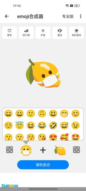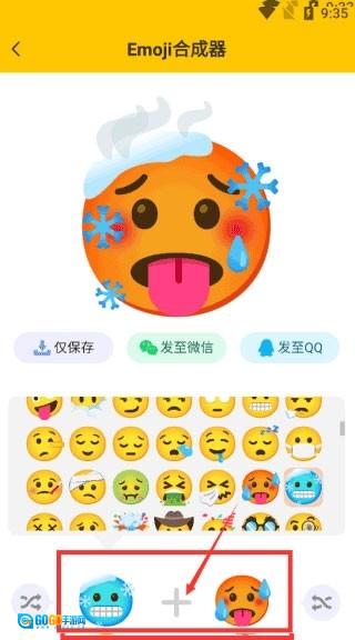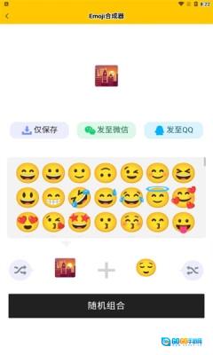 这款软件配备了丰富的Emoji表情资源,你只需在界面下方依次挑选两个Emoji,系统便会自动把它们合成一个全新的表情。
