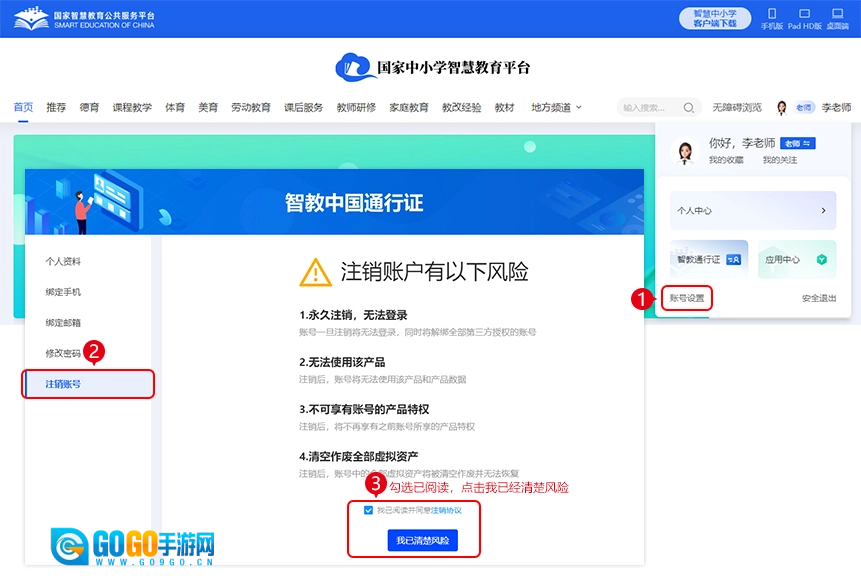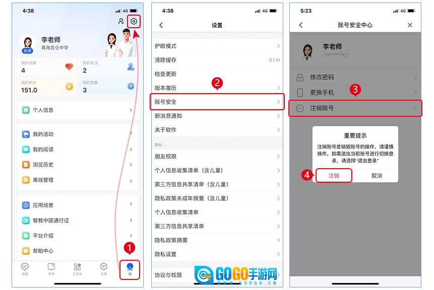 1、端:登录后,您可通过下方导航栏依次进入【我】-【设置】-【账号安全】-【注销账号】页面,点击【注销】按钮完成账号注销。注销后账号信息(含相关记录、证书等)将被清空,且无法找回,请您务必谨慎操作。