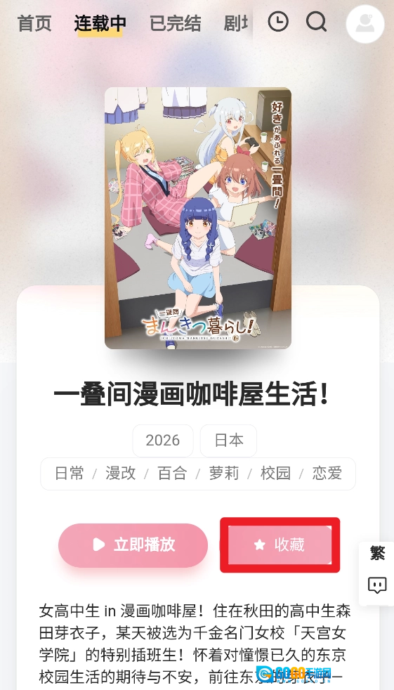 3、接着一键打开并进入番剧详情页,点击“收藏”按钮。