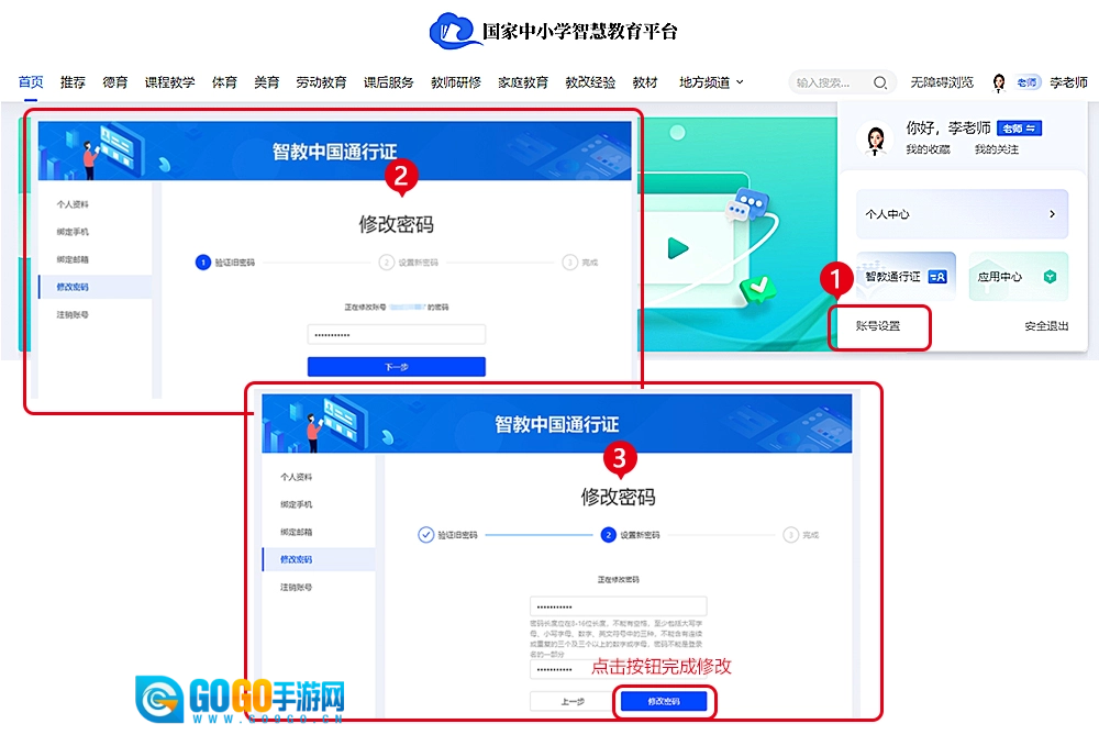 1、网页端:登录账号后,您可点击首页右上角的【账号设置】选项,接着选择【修改密码】,先输入旧密码完成验证,之后就能设置新密码了。