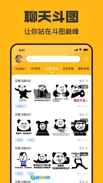 2、支持在社交平台发送各类自制表情包,是聊天斗图的必备软件。表情包制作功能配备了海量的表情包素材。