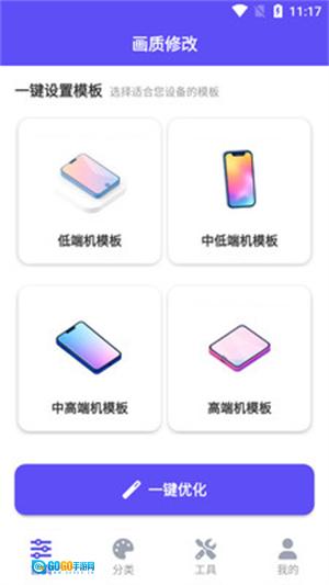 2、一键优化:无需繁琐设置,只需点击即可应用游戏画质的推荐配置。