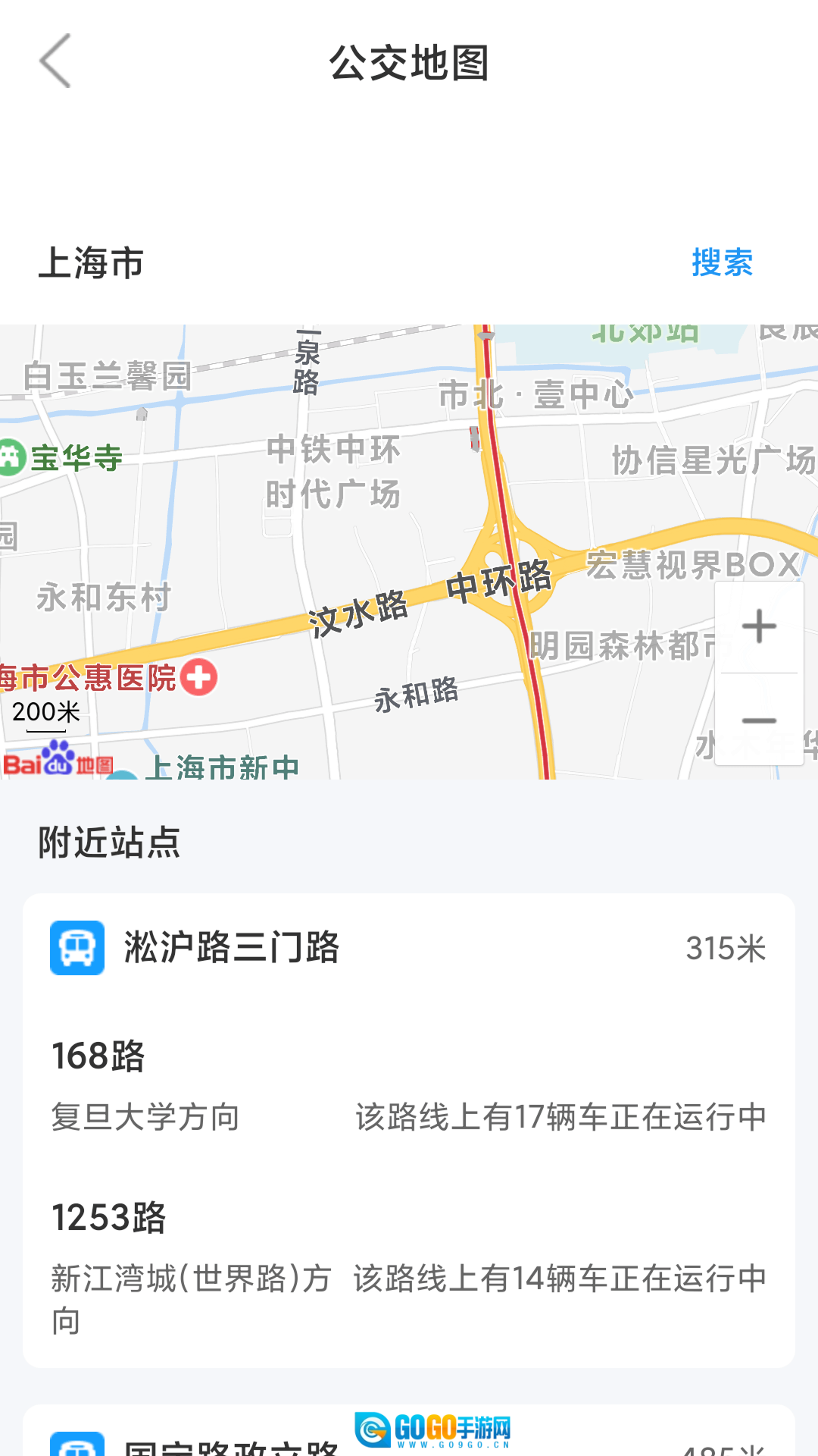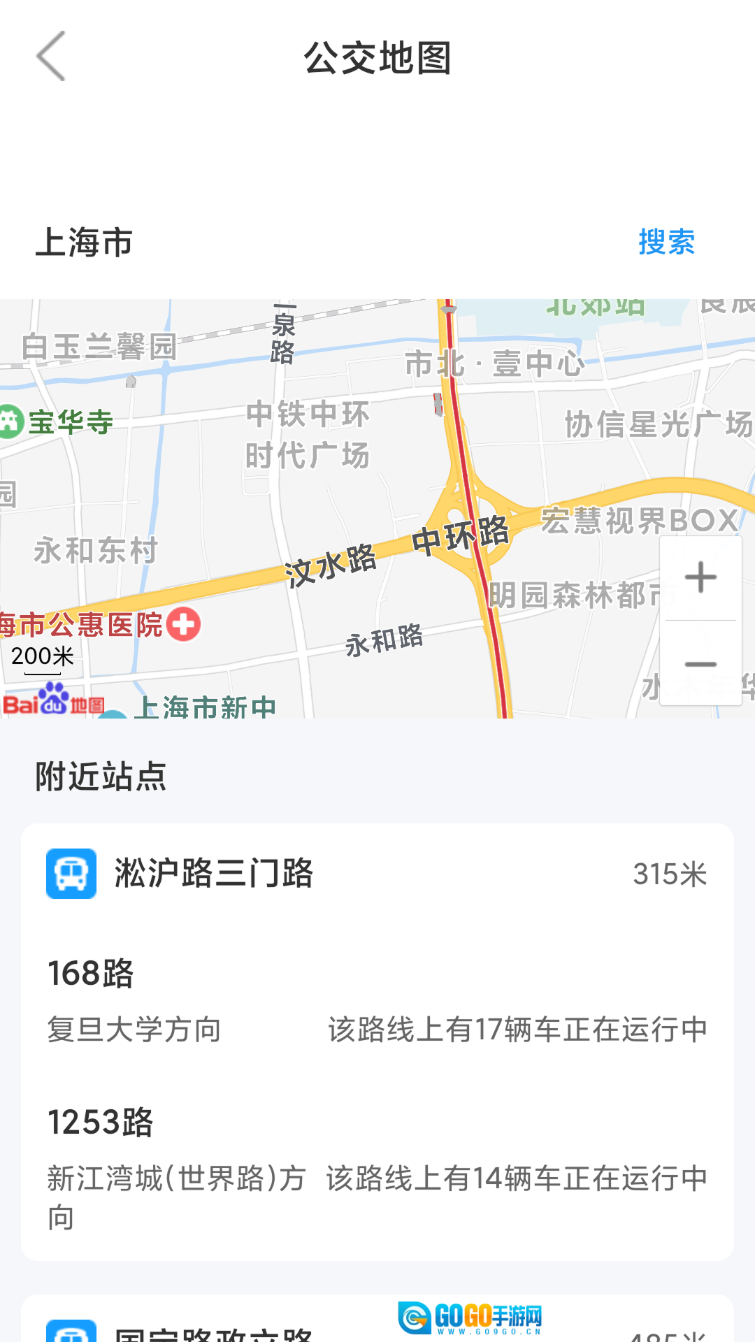 2、通过公交页面,用户能够查看公交地图,还能获取附近站点等详细信息。