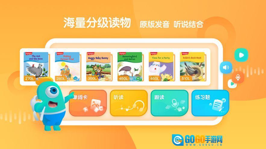 3、海量分级读物,各种单词卡、听读跟读、练习题,原版发音。