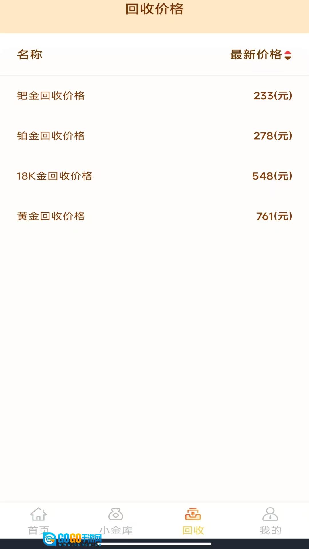 3、清晰展示钯金、铂金、18K金、黄金等各类黄金回收价格,方便用户实时了解回收市场的最新动态
