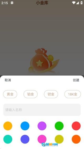 2、点击小金库,便于你进行创建操作,还能选择不同的颜色背景来呈现。