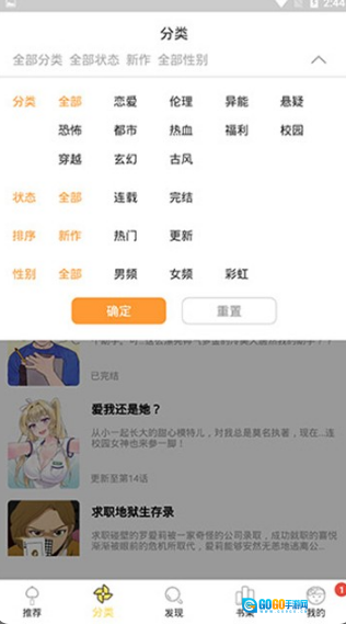 2、在这款软件中你可以使用分类功能来找特定的漫画