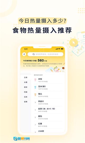 【查询】在此处可以查询各类食物的热量信息,还能了解自己每次饮食的热量摄入情况。