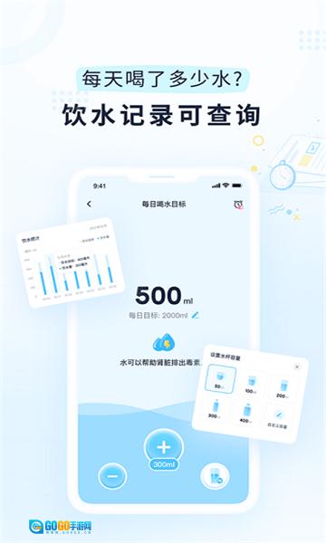 【饮水】在这里也能查看自己的饮水记录,记录过程简单轻松,还能及时提醒你,让你不会忘记喝水。