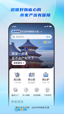 居家通是专门为银发群体设计的养老服务应用,精心挑选优质商品,品质有保障可放心购买。包含多条精品旅游旅居路线,贴合老人身体情况,让老年出行更舒适。科技养老服务全方位保障,一键呼救、智能防跌倒监测,实时守护;定期上门护理可预约,多方面关注老人健康。界面简单容易操作,是银发族便利生活的好助手,开启安心舒适的晚年生活就用它!