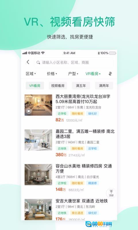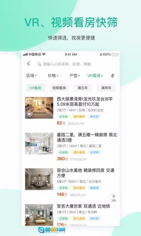 2、VR和视频看房,快速筛选,找房更便捷