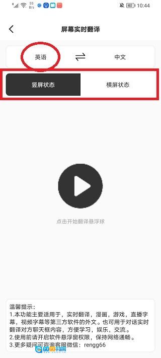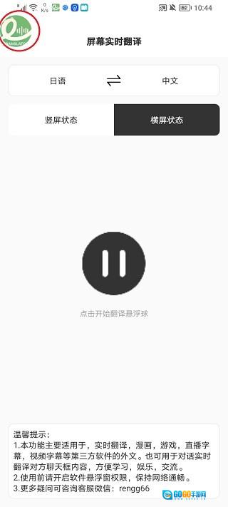 5、打开要使用的软件或游戏后,当需要翻译时点击绿色小圆标,稍作等待,就能在屏幕上看到翻译后的结果了。
