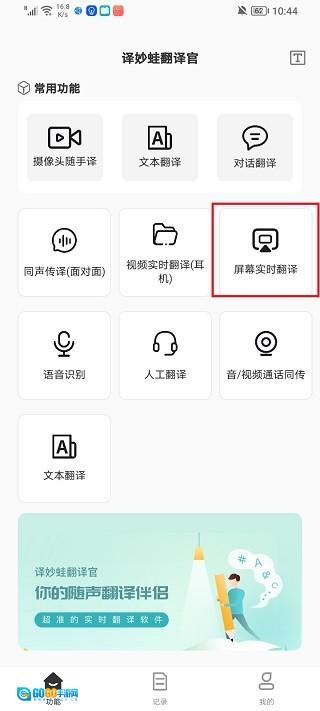 1、打开译妙蛙翻译官正版,选择屏幕实时翻译