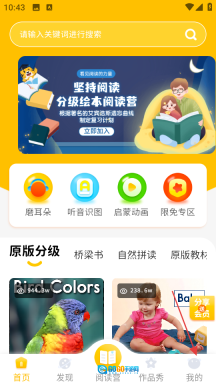 1、资源类型丰富多样:包含海量英语经典绘本、听读学习材料以及启蒙动画,覆盖不同难度级别与主题类别,能够满足从幼儿到小学阶段孩子的英语启蒙学习需求,无需切换平台或页面就能获取多元化的学习内容。