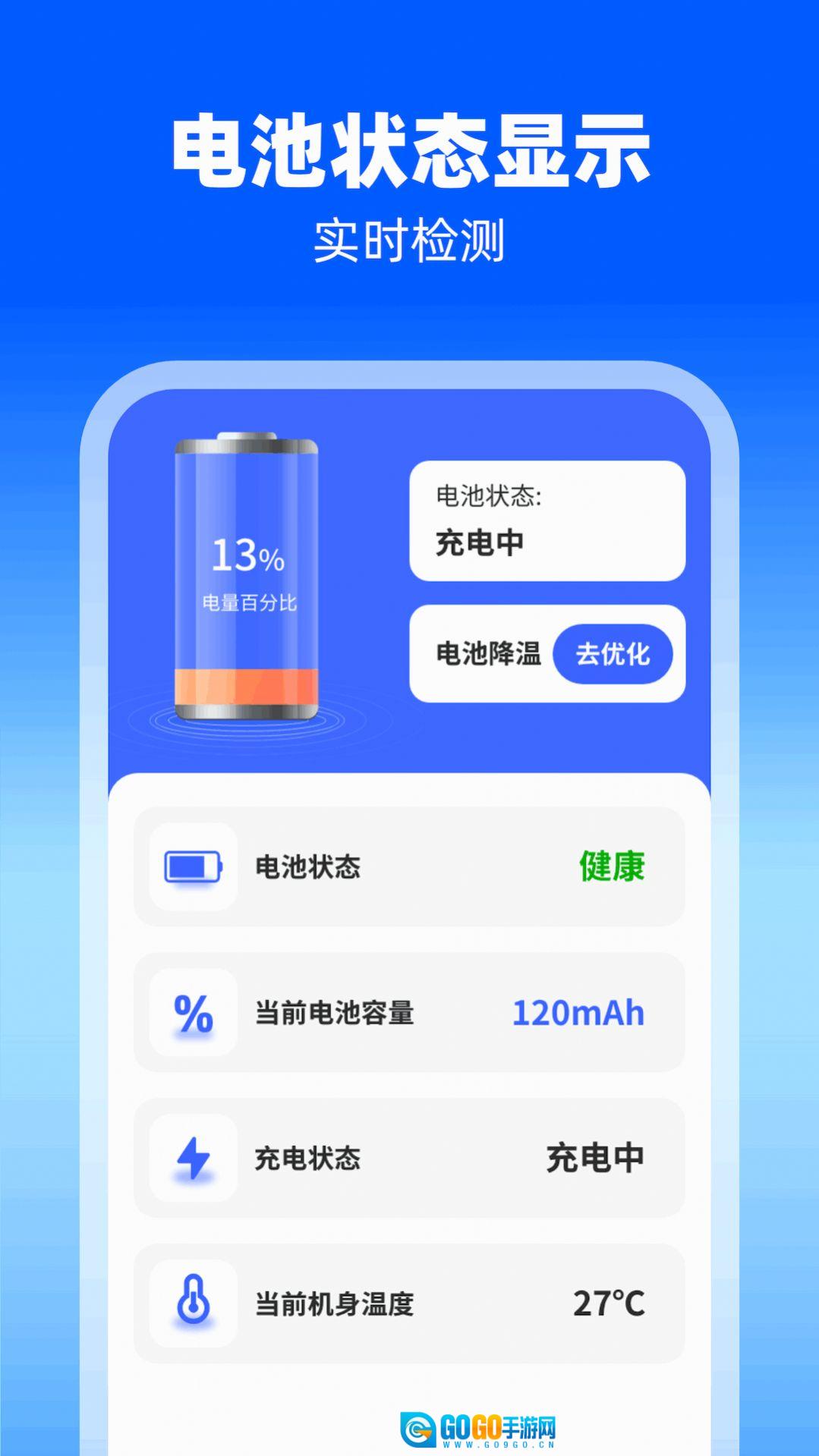 2、可实时展示电量、电池温度等信息,便于用户随时掌握手机电池的运行状态;