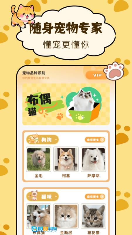 只需上传宠物照片,借助智能图像识别技术,就能迅速且精准地判断出宠物的品种,帮助宠物主人快速知晓爱宠的品种背景。