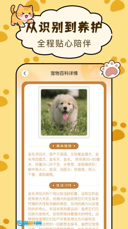 2、面向不同品种的宠物,提供详尽的生活习性说明,从多方面助力主人更深入地了解爱宠,实现贴心照料。
