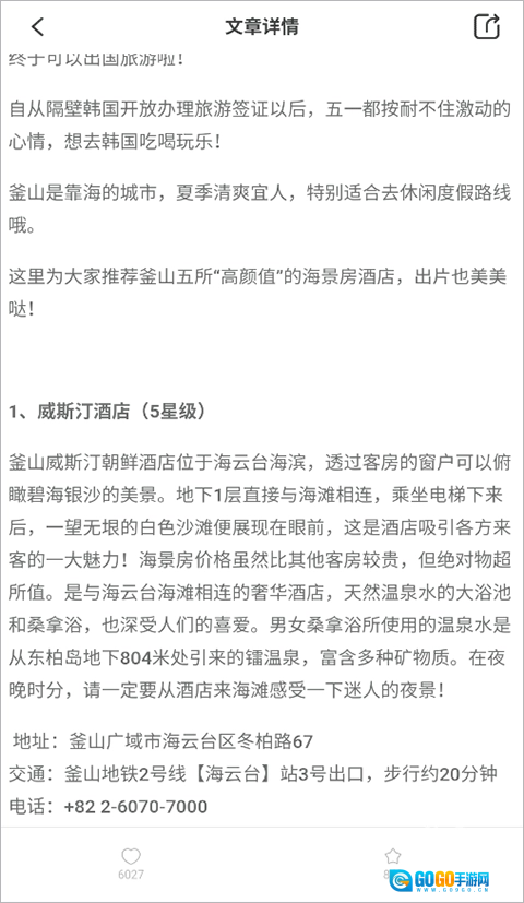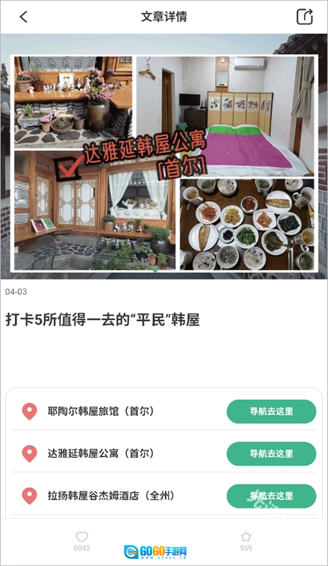 4、小编以“韩国”为例,点开一篇韩屋名宿推荐的帖子,就能看到详细的图文内容,帖子下方还附带了具体的地址信息。