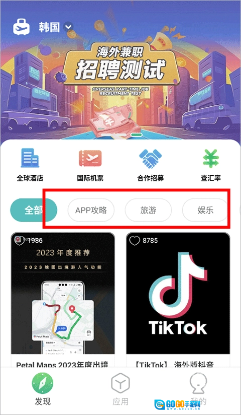 搜索“旅游”“外卖”“购物”“翻译”“旅游”“新闻”等内容,以发现更多热门的海外相关信息。