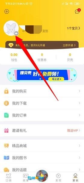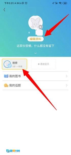 2、此时我们可以点击上方的编辑资料来修改自己的名字或头像,也可以点击宝贝,对它的小名或头像进行修改。