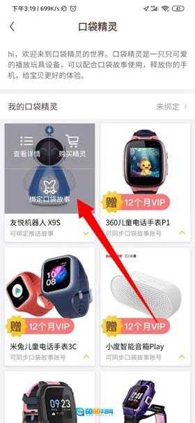 3、就会出现对应的选项,用户若没有相关设备可选择购买,已拥有相关设备则可选择绑定口袋故事。