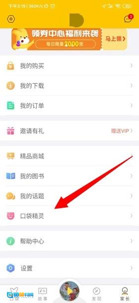 1、在我的界面里,向下滑动屏幕,找到并点击“口袋精灵”这个选项。