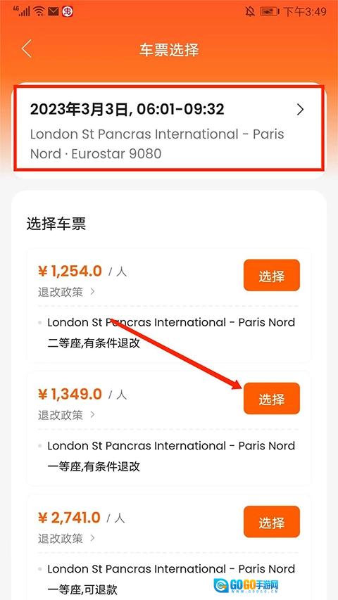 3、选好所需的班次与座位类型后,点击“选择”按钮。