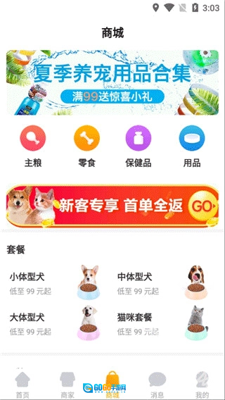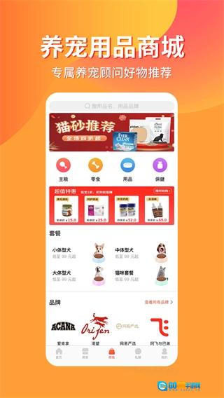 3. 为购物中心供应商品,商城提供性价比高的猫粮、狗粮、零售玩具、日常护理用品、保健产品以及宠物套餐等。