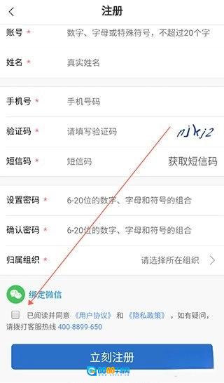 2、进入注册页面后,根据提示填写对应的信息,完成后勾选相关协议,点击“立即注册”就能完成注册流程。
