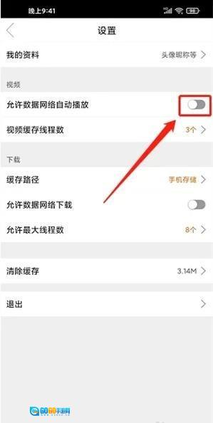 进入设置页面后,找到【允许数据网络自动播放】选项,点击其右侧的按钮将该功能关闭。