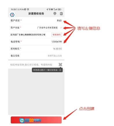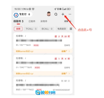 2.登录后,点击页面右上角的“+”按钮,创建一个新的揽收任务