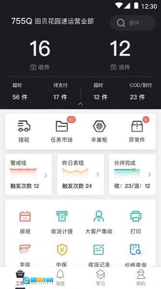 顺丰大哥是顺丰速运为快递员打造的专属移动办公应用,主要服务于20kg以上的重货运输需求。这款App整合了快递信息查询、智能路线规划、客户管理等实用功能,同时具备数据统计、团队协作等核心功能。用户注册登录后,可通过工作、消息、学习、我的等板块,查看接驳任务、任务市场、丰巢柜使用情况、异常件处理等内容。