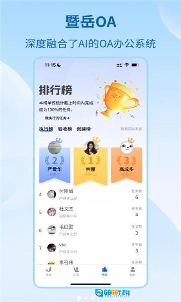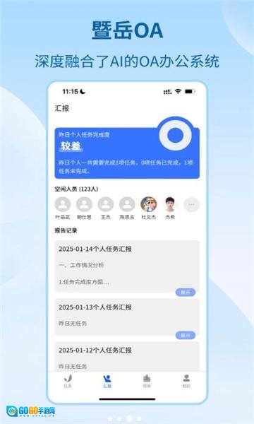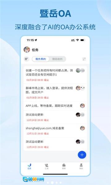 暨岳oa是上海暨岳信息技术有限公司打造的企业级办公助手,它将AI技术融入日常企业管理模式,帮助员工掌握自身办公效率,并且覆盖了通讯、审批、财务等多个业务板块。