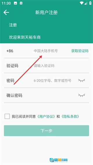 2、在新用户注册页面输入中国大陆手机号。