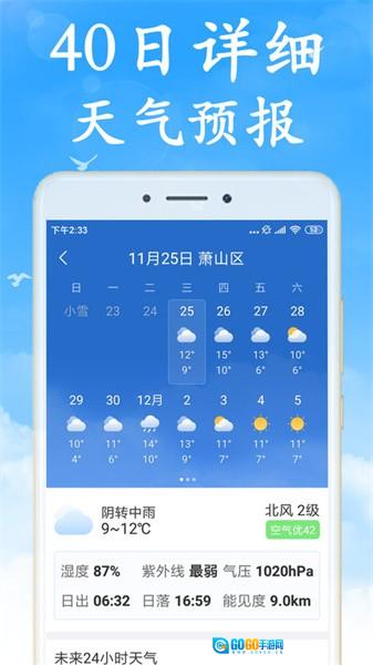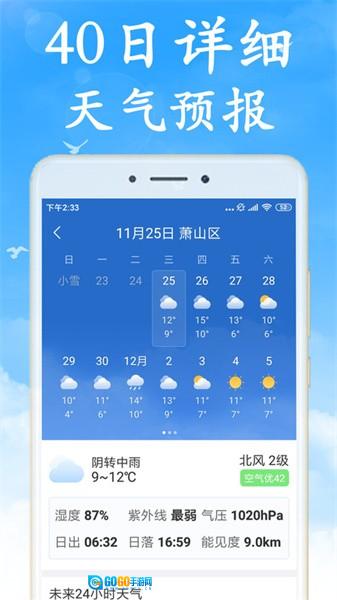 2、精准实时预报与24小时逐小时天气预报,温度变化冷暖早知晓。