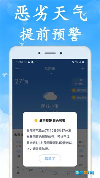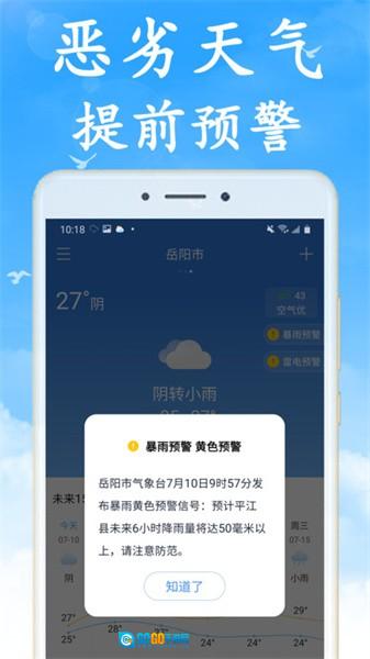 4、天气预警通知:针对异常天气会及时发出提醒,并提供防御指南,帮助您有效防范各类气象灾害