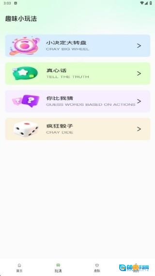 3、玩法板块页面呈现了趣味模式,可供你在聚会时体验转盘、骰子等各类玩法。