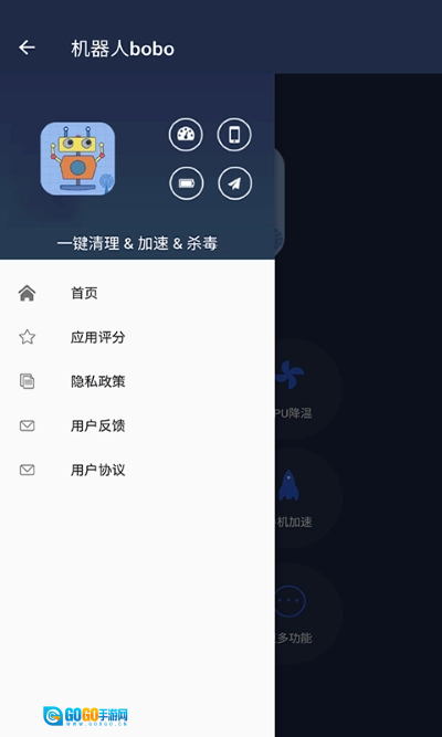 机器人bobo整合了内存清理、垃圾清理、病毒防护以及核心安全管理等功能,从多方面保障使用安全。它的一键清理功能能够迅速且准确地扫描并清理垃圾文件,切实提高设备的运行速度,使设备维持流畅的使用状态。