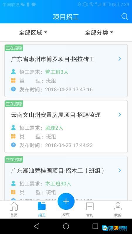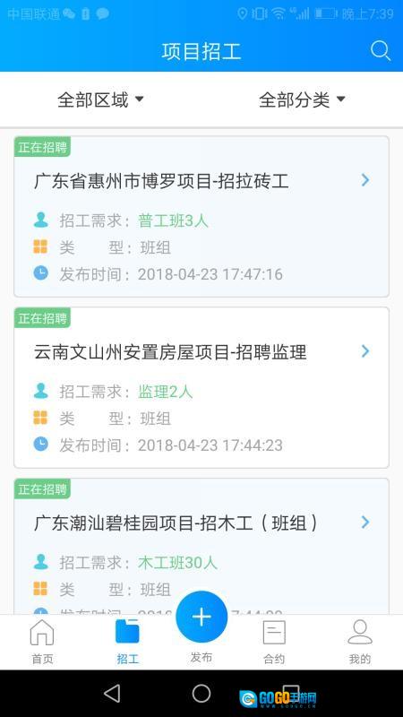 4.进入首页,点击发布招工、项目招工等进行操作