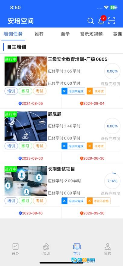3、员工可在此处进行练习题的练习,通过多种方式掌握安全知识。