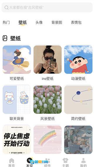 2、发现里有背景图、壁纸、头像、表情包四种分类。