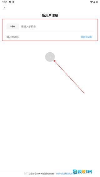 3、进入新用户注册页面后,先输入手机号,接着点击【获取验证码】按钮,随后填入收到的验证码,以此完成注册流程的基础环节。