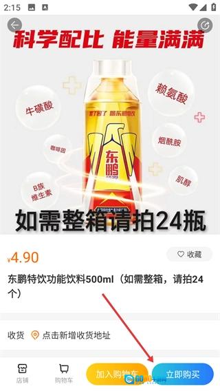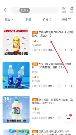 3、从商品列表里挑选想要的商品(例如【东鹏特饮功能饮料500ml】),点击该商品进入其详情页面。