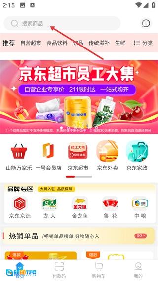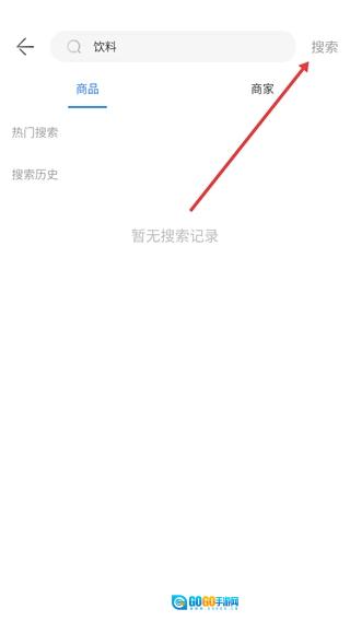 1、在首页点击顶部的搜索框,输入目标商品的关键词(例如“饮料”),即可进入搜索页面。